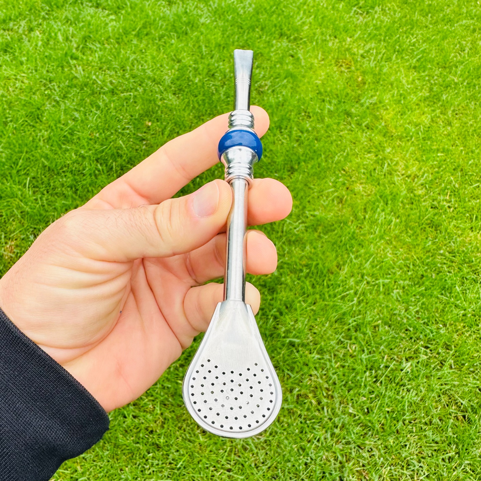 Tudjuk, hogy nélkülözhetetlen egy jó kis bombilla a matérók részére, és a Bombilla Cuchara Blue is ezt kínálja neked, egy jó kis társat a matézás örömeiben. Ez az argentin fém bombilla nemcsak praktikus, de stílusos is, a kanál formájú szűrőfejnek köszönhetően tökéletesen átengedi az ízeket, miközben visszatartja a leveleket.©