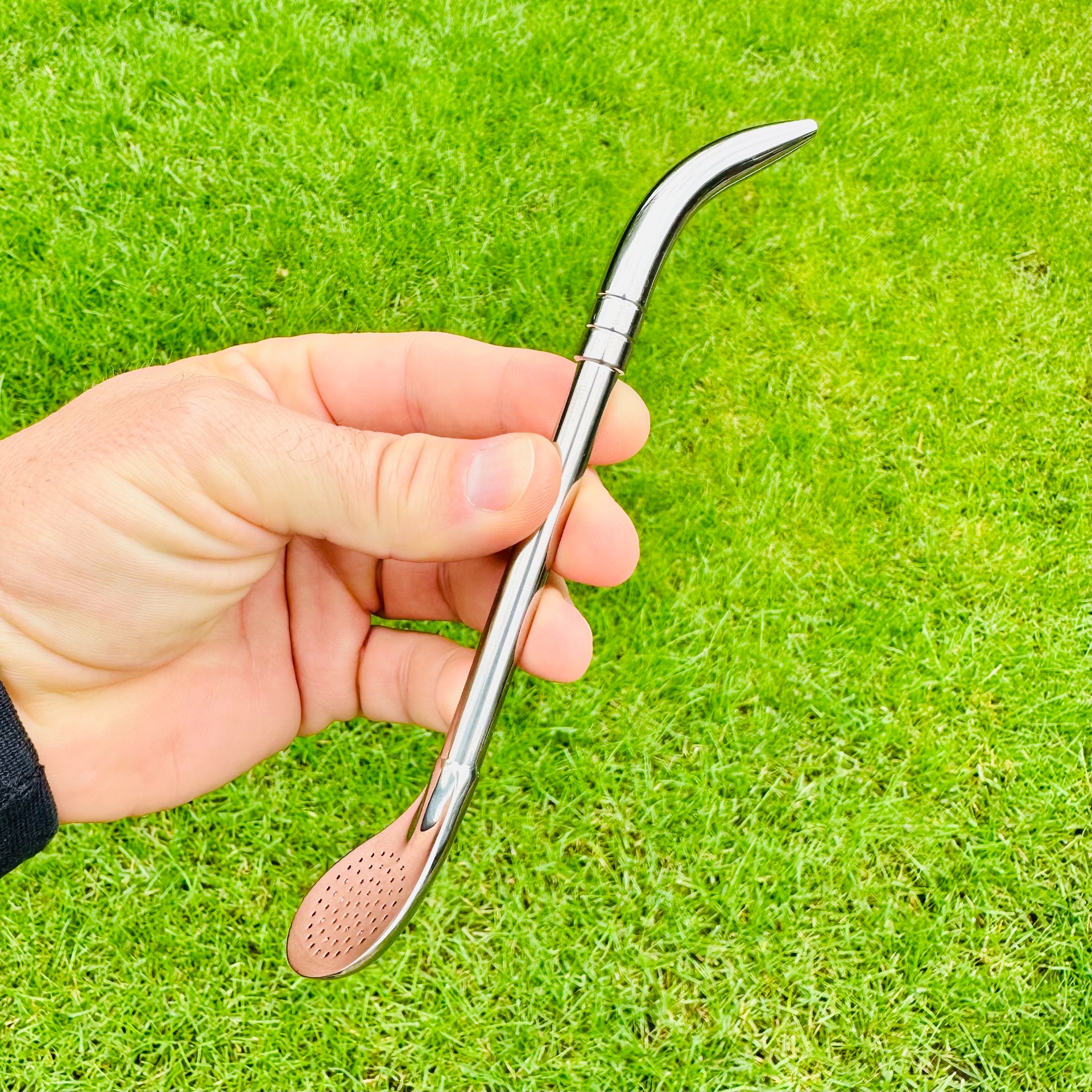 Ez a bombilla olyan, mint egy régi jó barát: mindig ott van, amikor szükséged van rá. A Cuchara Doblado hajlított véggel kényelmes, praktikus és stílusos választás, amely minden kortyot könnyeddé tesz. Az argentin rozsdamentes acél strapabíró kialakítása, és a kanál formájú szűrőfej garantálja, hogy csak az ízek jussanak át szűrőkön, és a levelek ne zavarják meg a mate fogyasztás örömét.©