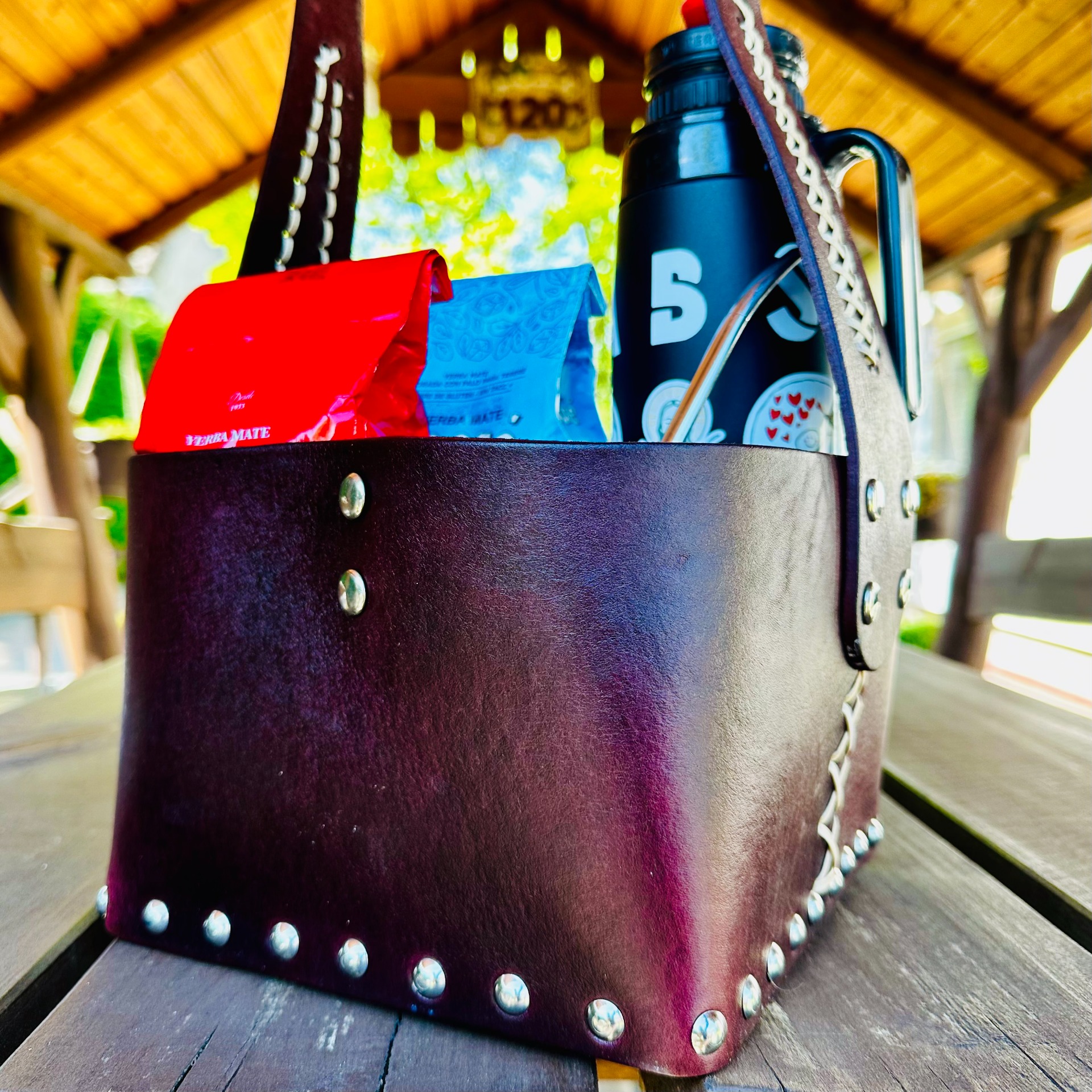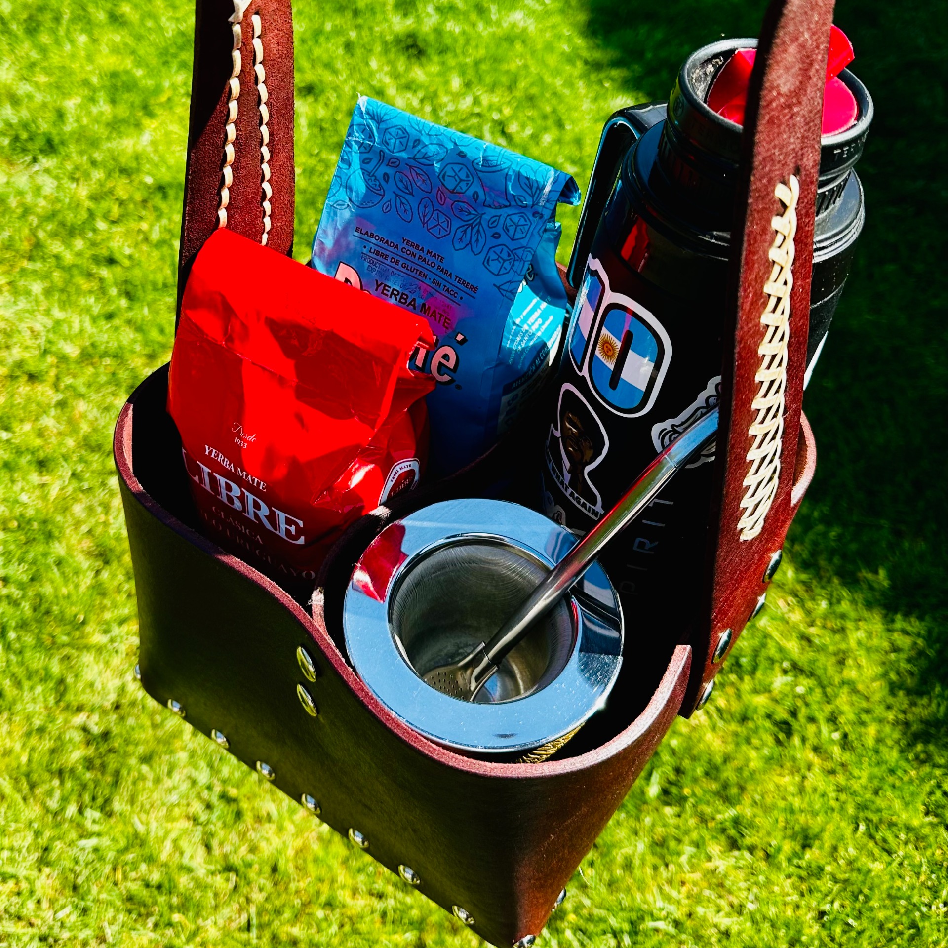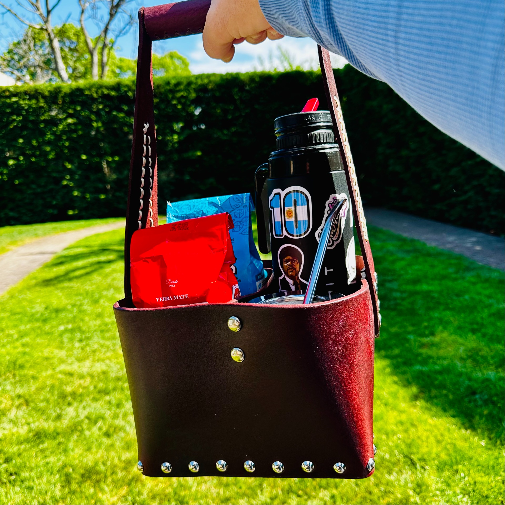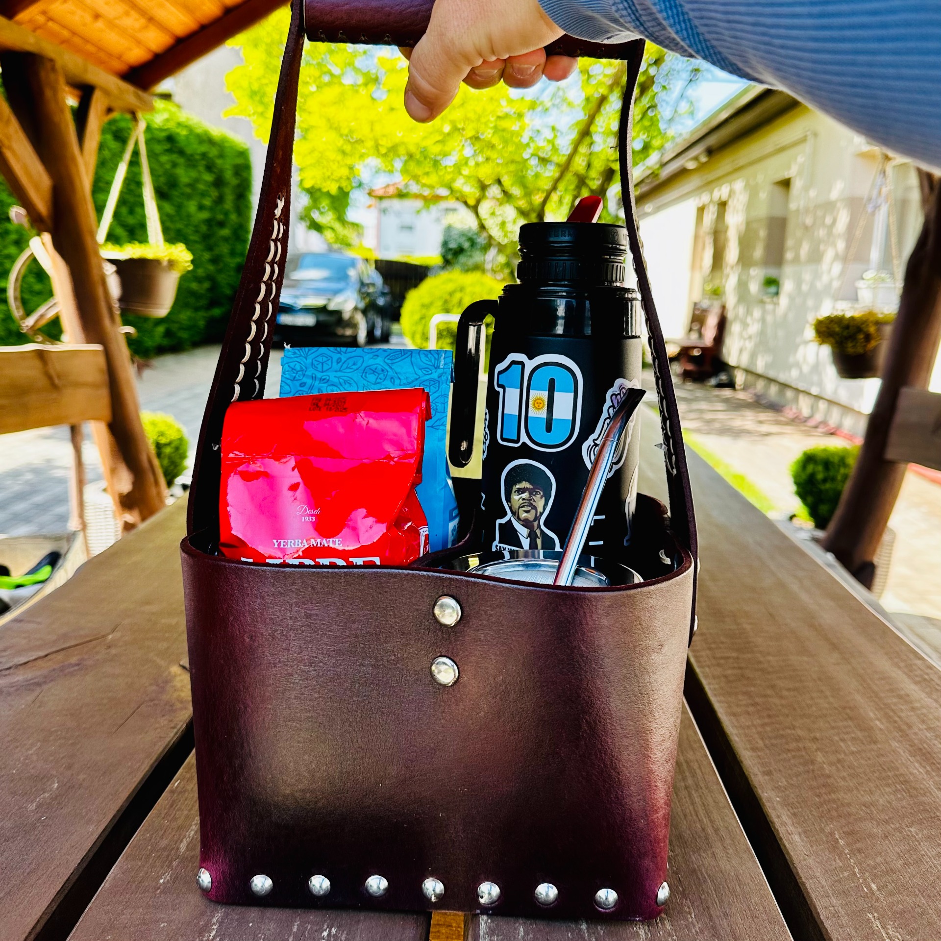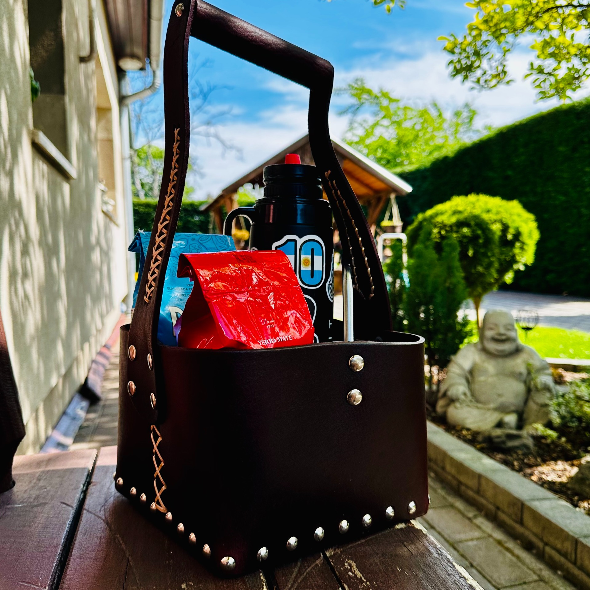 Masszív kialakítása stabilan tartja a mate szettedet – yerba, tök, bombilla, termosz? Todo bien. A megerősített szegecsek, díszvarrások és erős fülek nemcsak szépek, hanem készen állnak a napi kalandokra is.