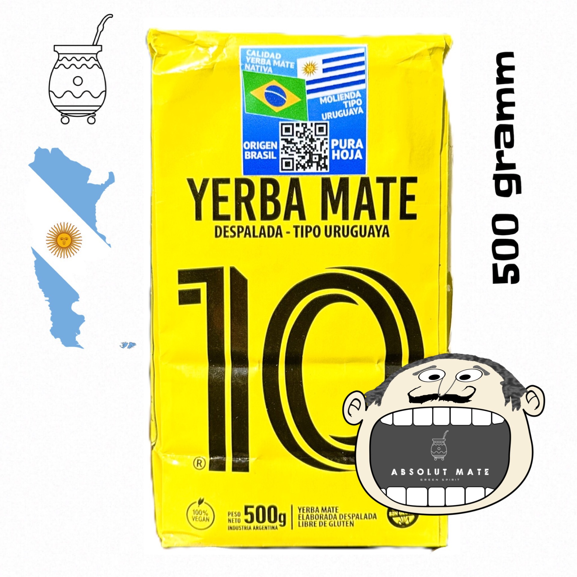 A Yerba Mate 10 Reserva Yellow (vagy Despalada) azonban a fentieken is túlmutat, mivel ez egy prémium kategóriás argentin yerba mate, 500 g-os kiszerelésben, amely despalada (szár-mentes) vágású, uruguayi stílusú (tipo uruguaya) keverék. A nyersanyag részben Brazíliából származik, az előállítás Argentínában történik, és a termék elsősorban az Argentin piacra készült, de stílusában az uruguayi mate-kultúrát idézi. A legnagyobb levél-arányt kínálja a piacon, mesterséges adalékoktól és gluténtól mentesen. Ideális választás azok számára, akik intenzívebb ízű, magas minőségű yerba matét keresnek, különösen azoknak, akik kedvelik az uruguayi vágási stílust, vagy szeretnék azt kipróbálni.©